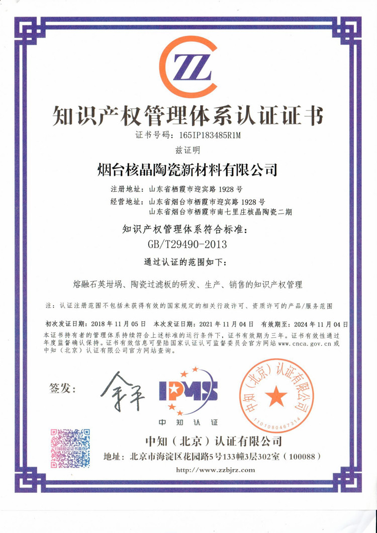 日本欧美久久久久免费播放网 知識産權管理體系認證證書-榮譽資質-煙台康鑫橡胶制造有限公司